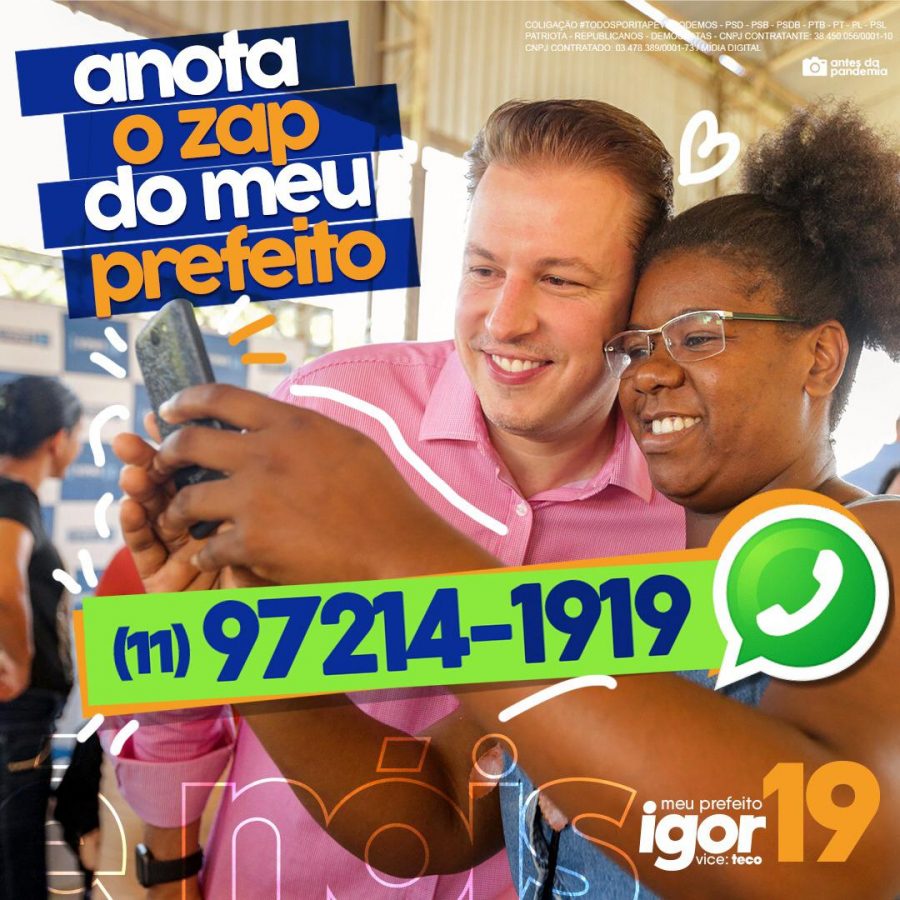 Nesta terça-feira (29), Igor divulgou o WhatsApp (11) 97214-1919 para que as pessoas possam adicioná-lo e receber, em primeira mão, informações sobre o seu plano de governo, assim como as notícias da campanha.